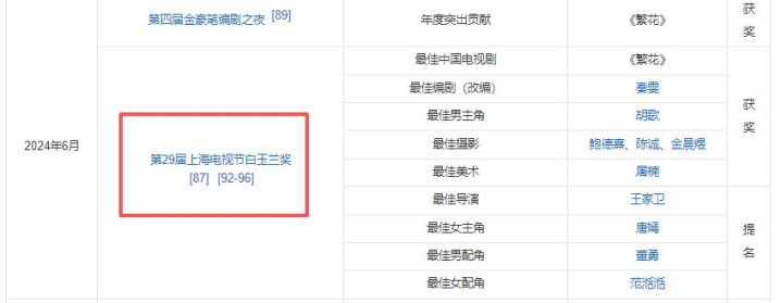 2024年上海电视节白玉兰奖,《繁花》一口气提名了9项。